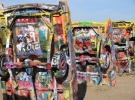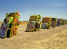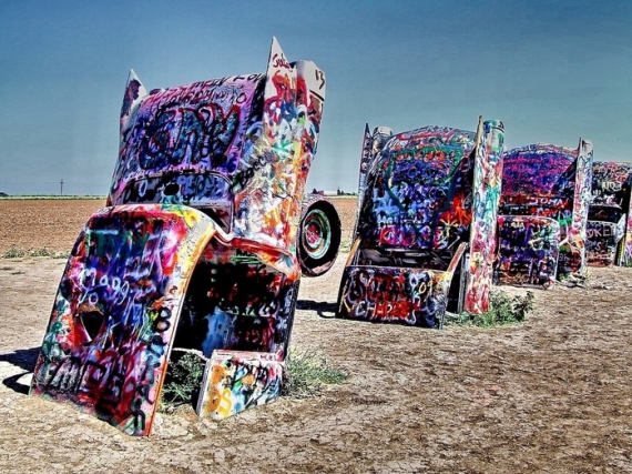 Ранчо Кадилаків було створено в 70-х роках минулого століття за примхою американського мультимільйонера Стенлі Маршу 3. Десять автомобілів різних років випуску (1949, 1950, 1954, 1956, 1957, 1958, 1959, 1960, 1962 і 1963) вкопали в землю, дотримуючись при цьому нахил, рівний куту нахилу єгипетських пірамід у Гізі. Туристи швидко розфарбували Кадилаки малюнками і написами, і в результаті це стало доброю традицією. Коли на машинах не залишається вільного місця, їх просто перефарбовують в однотонний колір - і все починається спочатку.