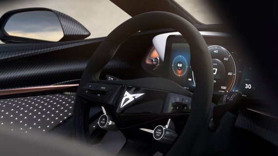 Салон нового Cupra футуристичний. Серед особливостей — кнопка "пуск/зупинка" винесена на кермо. Але не факт, що серійна модель збереже актуальні особливост.