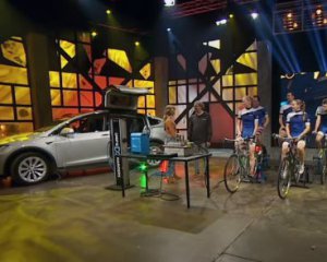 Група із 9 велосипедистів, крутячи педалі, змогла підзарядити електромобіль Tesla Model X.