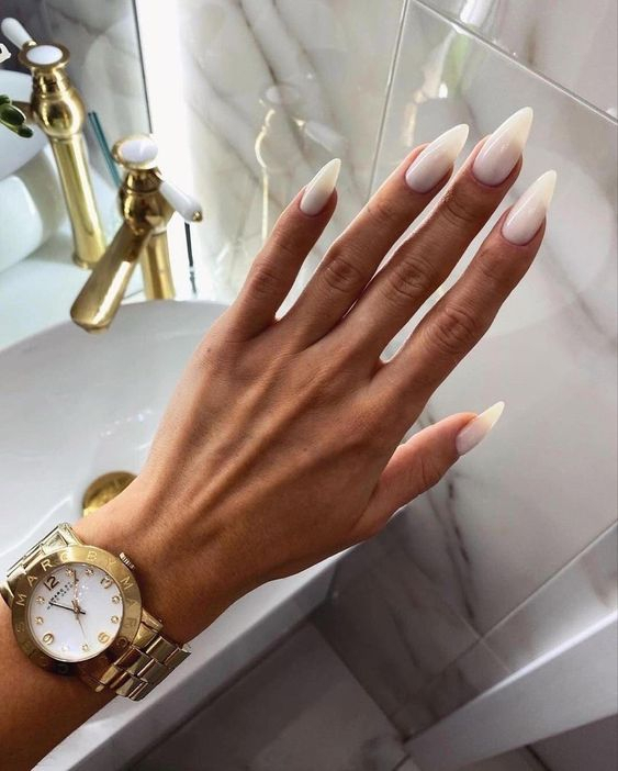 Цей колір підходить для будь-якої довжини та має гарний вигляд з дизайном і без. Однак, якщо хочете додати акцентів - попросіть нейл-майстра наклеїти золоті або срібні смужки. З молочним вдало поєднуються чорні написи, квіткові принти та стрази.