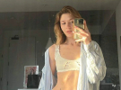 У своєму Instagram блогерка опублікувала кадри, на яких позувала в білизні. Наверх одягла сорочку в смужку.