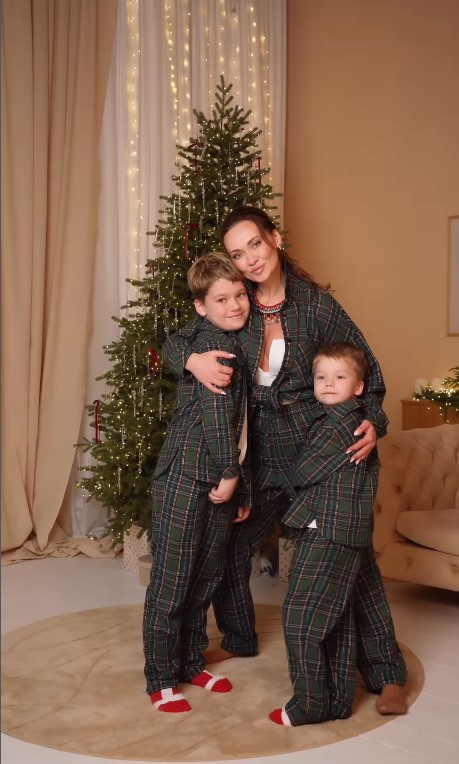 У своєму Instagram опублікувала відео, на якому позувала разом із синами - 10-річним Глібом і п'ятирічним Микитою - біля новорічної ялинки.