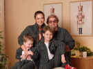 Для зйомки всі одягли темно-зелені картаті піжами. Близькі веселилися й обіймалися. Також на декількох знімках показалася бабуся.