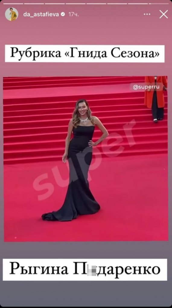 "Рубрика "Гнида Сезону". Ригіна П*даренко", − написала Астаф'єва.