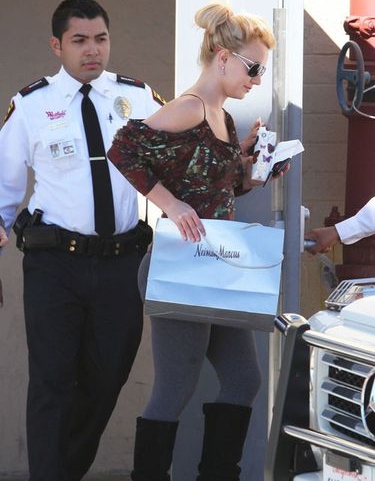 Очевидно, співачка збирається записувати новий альбом. Брітні була в доброму гуморі і виглядала схудлою і посвіжілою.На Спірс була золотисто-бордова блуза з відкритими плечима, сірі легінси і високі чорні чоботи. В одній руці зірка несла пакет з бутіка, а в іншій - пляшечку з якимось напоєм. Співачку супроводжував охоронець, який контролював її дії.