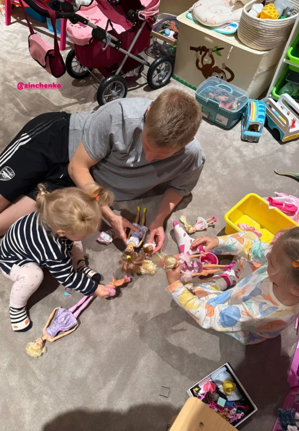 Раніше Зінченки влаштували ніжну фотосесію з доньками. Зіркова родина позувала на природі. Жінка одягла рожеві джинси та білу футболку, а дівчатка позували в однакових сарафанах, сорочках і колготках.