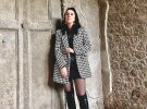 Джамала постала в шкіряній мінісукні, колготах у сіточку та ботфортах. Образ зірки вдало підкреслив її схудлу фігуру.