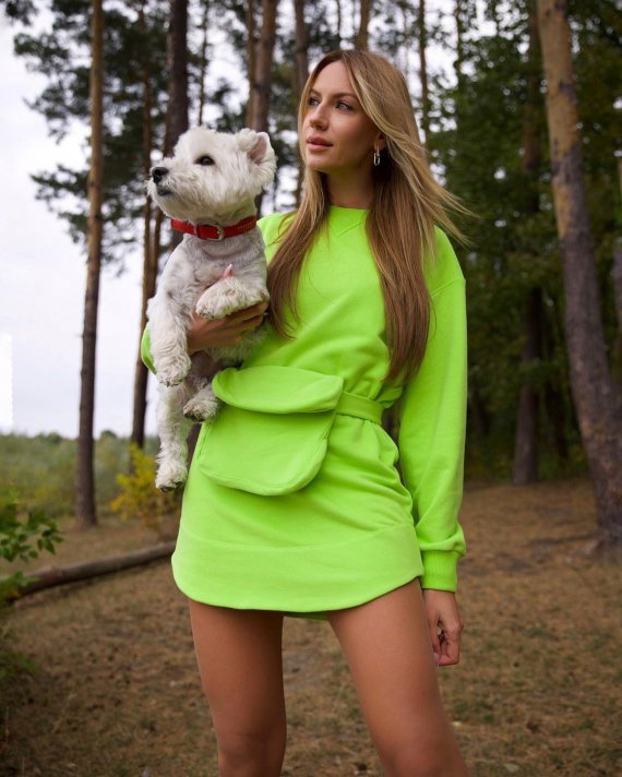 На кадрах, які вона виклала в Instagram, позувала в кислотній мінісукні, яка підкреслила її ідеальні ноги. У комплекті до вбрання ведучої була сумочка на пояс.