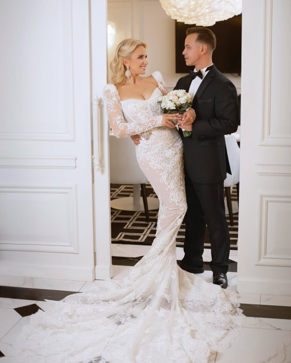 "Мереживне весілля. Це про мереживо з любові, ніжності, терпіння, пристрасті та божевілля. Це наша історія, яку ми створюємо щодня. Люблю тебе, мій Дикий, за кожну ниточку цієї історії . Мені здається, ми плетем разом щось унікальне і неповторне: нашу сімʼю. Дякую, що ти мене так само впевнено ведеш по життю, як колись в танці", - написала знаменитість.