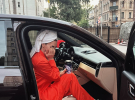 На решті знімків жінка постала перед камерою у авто без макіяжу та з рушником на голові.