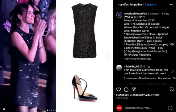 Для заходу жінка одягла мінісукню від Valentino вартістю $6900. Образ доповнила туфлями Christian Louboutin за $715.