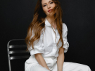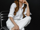 Перед камерою постала в білих штанах і сорочці в тон. Образ доповнила локонами, ніжним макіяжем і вишуканими прикрасами.