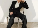 Перед камерою зірка постала в елегантних костюмах та кедах. Образ доповнила розпущеним волоссям і відсутністю макіяжу.