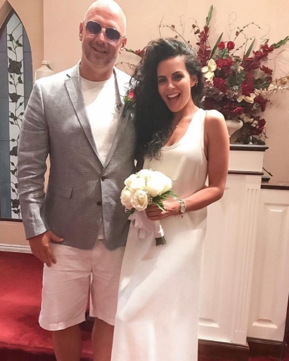 На фото – Потап у піджаку і білих шортах, Анастасія – в білому платті з букетом квітів.