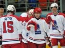 Гості, які супроводжували Володимира Путіна, серед яких екс-прем'єр Італії Сильвіо Берлусконі, екс-канцлер Німеччини Герхард Шредер і глава міжнародної федерації хокею Рене Фазель, на лід виходити не стали, обмежившись переглядом сутички з віп-трибун.