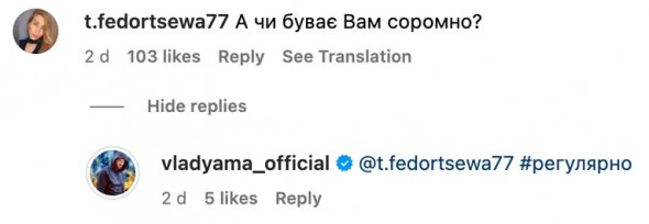 На питання підписників, чи буває йому соромно, артист відповів: "регулярно". Про це написав в Instagram.