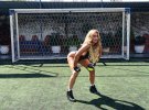 Дівчата завітали на футбольне поле у купальниках і погрались з м'ячем.