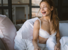 Перед камерою постала в білому мереживному ліфі та штанах.
