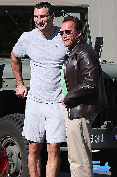 Володимир Кличко побував в гостях у Шварценеггера в Брентвуді, штат Каліфорнія, де, за повідомленнями західних ЗМІ, вони разом позаймались в спортзалі, а потім актор показав боксерові свій армійський джип.