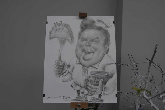 Напередодні Дня сміху у столичному більярдному клубі "Шарпей" художник-карикатурист Анатолій Бабич виставив карикатури на українських знаменитостей. Першим на виставку прийшов співак Павло Зібров. Знайшов шарж на себе і тицьнув у нього дулю.