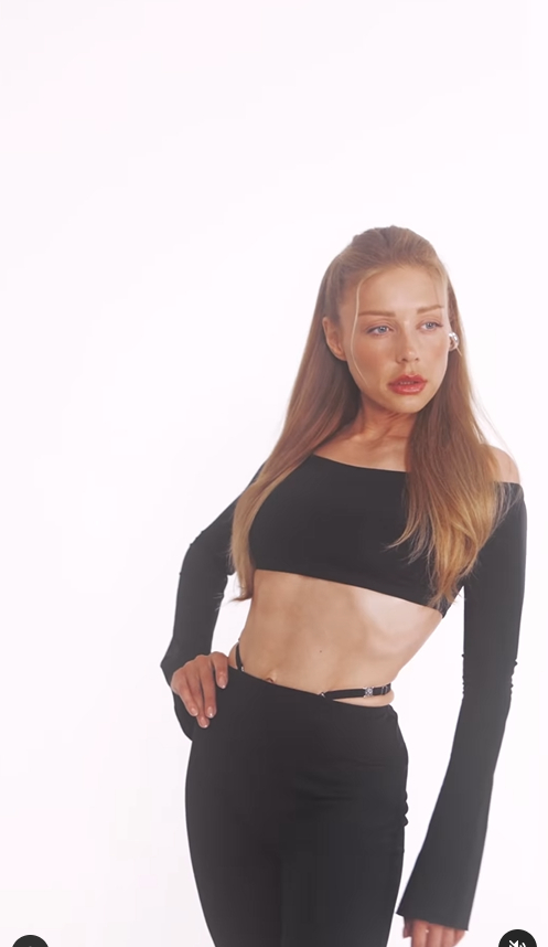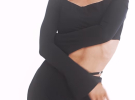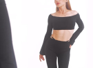 Цього разу зірка знялась у короткому топі з довгими рукавами та чорних штанах.