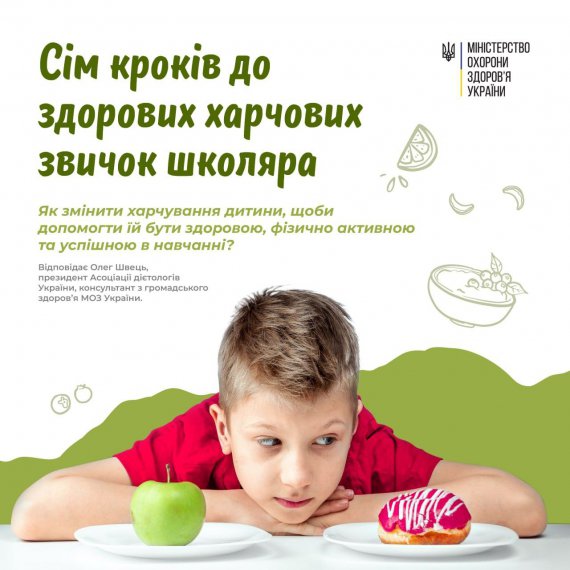 Раціон школяра впливає також в першу чергу на здоров' я та фізичну активність, пише Міністерство охорони здоров'я.