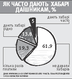 Водії дають хабарі даїшникам, щоб не платити великі штрафи. Скажімо, треба заплатити 425 гривень, а водій відкупається вдвічі меншою сумою. Також хабарі дають інспекторам і через складну процедуру оплати самого штрафу. Водій має піти в банк, а потім із квитанцією з'явитися в районне відділення ДАІ. Там приймальні дні — двічі на тиждень. Це породжує масу зайвих проблем. Легше відразу дати на лапу.