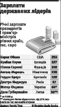 — Гадаю, що реально прем"єр Росії Володимир Путін значно багатший за Обаму, Меркель і Брауна разом узятих, — зауважує політолог. — Ющенко, враховуючи його дружбу з олігархами, теж має набагато вищі доходи від своєї посади. Бо в наших країнах можновладцям просто приносять гроші і просять, щоб вони їх взяли. Звичайно, в обмін на якісь бізнесові пільги чи переваги. А наші народні депутати-мільярдери ще мають совість отримувати кошти "на оздоровлення". Хоча на період кризи обіцяли урізати свою зарплату.
