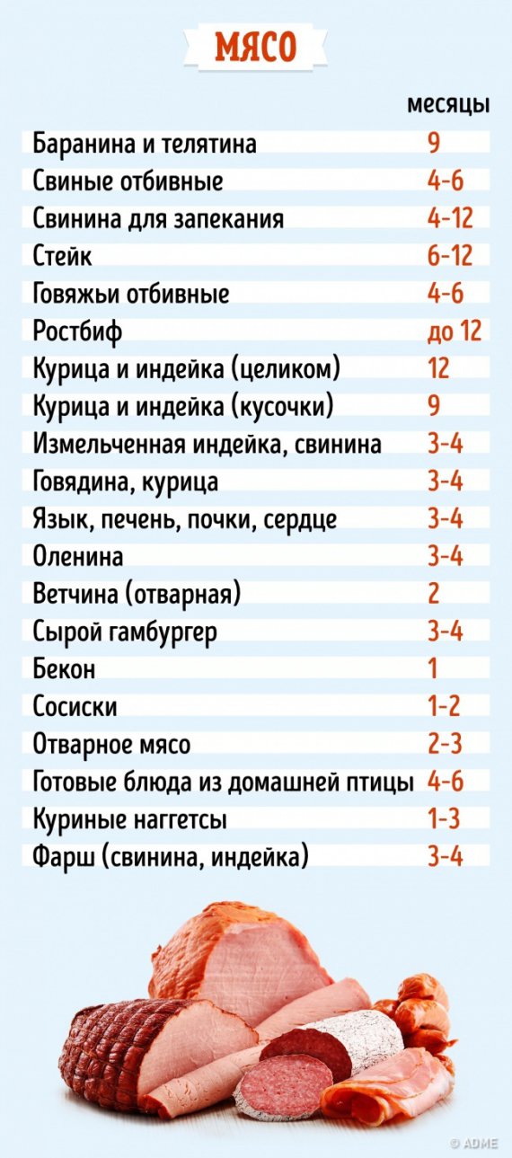 У цій підбірці зібрані фото-таблиці з переліком продуктів та часу зберігання.