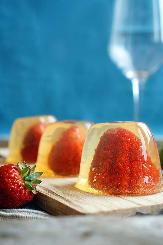 Десерт з шампанського і полуниці універсальний. Його не обов'язково готувати для якогось святкового приводу. Желе має яскравий смак шампанського та ягідну кислинку. Можна брати й інші фрукти, все крім ананаса і ківі. В них є кислота, яка заважає желатину робити правильну консистенцію.