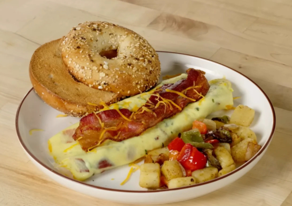 Шеф з Brooklyn Diner ділиться секретами приготування омлетів для великого потоку відвідувачів. Тут головне - швидкість, тому інгредієнти, такі як бекон, картопля та овочі, готуються заздалегідь, а яйця збиваються перед початком зміни. На пательню з олією швидко додається подрібнений гарячий бекон, свіжі трави - петрушка та естрагон, трохи солі. Яєчна суміш виливається і постійно рухається та перемішується, щоб омлет приготувався буквально за дві хвилини, не ставши скремблом. Наприкінці додається сир чеддер, і страва готова до подачі. Ключ до успіху - блискавична швидкість та постійний контроль за процесом.