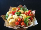 Його можна наповнювати сушеними квітами, горіхами, міні гарбузами, фруктами, овочами. Оригінально виглядають спагетті скручені кубельцем. Своїм нейтральним кольором вони підкреслюють яскравий акцент основних компонентів.