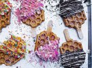 Бельгійські вафлі на дерев'яному патику, схожі на морозиво, покривають шоколадом, карамельними бульбашками та солодким полуничним кремом. Їх форму придумав Геоф Маніла, власник фірми Sweet Combforts. В одному з телевізійних інтерв'ю Маніла розповів, що планує відкрити магазин з гофрами на патику у місті Ірвіні в штаті Каліфорнія.