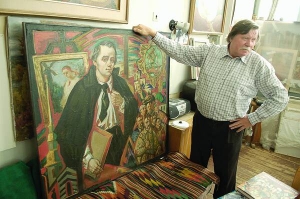 — Пропонують зробити виставку. П'ять років тому у музеї Шевченка виставив 63 роботи. Додому привіз 62, бо одну подарував. Не хочу виставок робити. Набридло. Картини треба зняти, відвезти, розвісити, фуршет влаштувати. Продажів зараз не маю. Можна заробити на розписі храмів. Так і мої учні заробляють. Я писав іконостас у Покровській церкві на Подолі. Цієї весни йду по Андріївському узвозу. Бачу, роботу мою продають — пейзаж із Седнева на Чернігівщині. Давно комусь подарував. Продавець каже: "Народний художник, 400 доларів". Ця робота коштує мінімум тисячу доларів. Я не признався, що то моя.