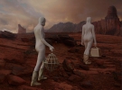 Нові мешканки планети деруться крутими схилами пустельних гір в скафандрах, потім одна з них народжує і згодом, вже з дитиною, продовжує свою подорож.