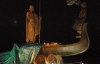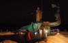 Фігури Щека й Хорива упали з постаменту головами вниз, лежать неподалік того фрагмента пам"ятника, який собою символізує човен.