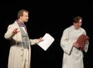 Однак, попри позірну сухість тексту артисти зуміли тримати увагу публіку впродовж усієї вистави. Адже, вони володіють не лише сценічним мовлення, а й уміють добре співати і танцювати.