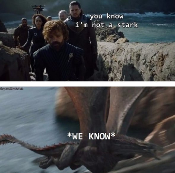 Посміялись над таємницею походження Джона Сноу, який виявився спадкоємцем Залізного трону: - "Я не Старк" - "Ми знаємо"