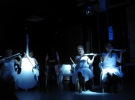 Санкт-Петербурзький театр "Согласие" приїхав до Луцька на Міжнародний фестиваль аматорських театрів "Мандрівний вішак". У ньому бере участь 86 акторів із України, Грузії, Німеччини, Росії та Білорусі. Виставу показують у темному залі нічного клубу. У кутку стоїть рояль. Акторки сидять за столиками на пластикових стільчиках. Декораціями служать картонні музичні інструменти. Жінки одягнені в білі сукні і чорні колготи в сіточку. Сюзанна грає на віолончелі в французькому провінційному ресторані.