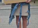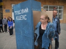 Посередині на площі перед пам'ятником встановили велику картонну коробку. Вона була заклеєна синім папером. Зверху великими білими літерами було написано Трудовий кодекс. Із двох боків коробки були вхід та вихід. Близько десятка молодих людей вистроїлися перед входом. Вони заходили в середину "трудового кодексу". Коли виходили, то були вдягнені в подерті та брудні дощовики. В руках тримали таблички із гаслами: "Навіть виправні роботи оплачуються", "Кріпацтво скасували в 1861 році", "Ні трудовому ярму".