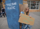 Сьогодні у Львові на проспекті Т. Шевченка біля пам'ятника Івасюку пройшла театралізована акція протесту. Молоді люди виступили проти нового Трудового кодексу та законопроекту про мирні зібрання. Організував протест громадський рух "Відсіч".
