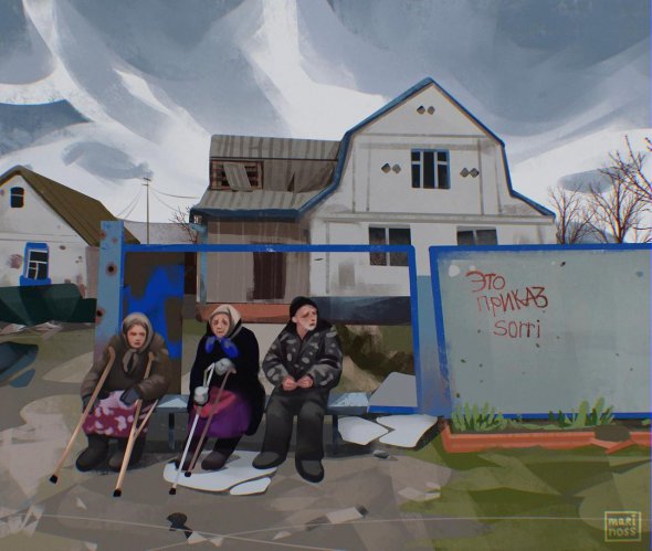 Авторка зображення - художниця з Дніпра Марина Сoлoменнікoва. Спочатку вона побачила в соцмережах фотографію Тетяни Близняк, яка із чоловіком, 3-місячною донькою та собакою всю ніч ховалася від бомбардування у Києві у метро. Цей кадр надихнув її намалювати ілюстрацію.