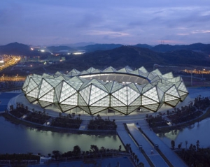 Baku Cristall Hall був споруджений на узбережжі Каспію в рекордно короткі терміни - всього за три місяці. Цей концертний комплекс має незвичайну складну архітектуру, на його фасаді встановлено безліч кристалів, які світяться. Крім того, він буде освітлений численними установками, що дозволяють створювати різні ефекти.