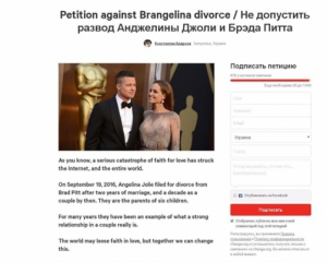 Костянтин Андрєєв із Запоріжжя склав петицію, яка не дасть акторам Анджеліні Джолі та Бреду Пітту розлучитися. Її російською та англійською мовами він залишив на сайті change.org – міжнародній платформі, де скласти або підтримати петицію може кожна людина у світі, пише kp.ua.