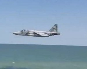 Український штурмовик Су-25 екстремально низько пролетів над пляжем біля курорту Кирилівка, що на Запоріжжі.