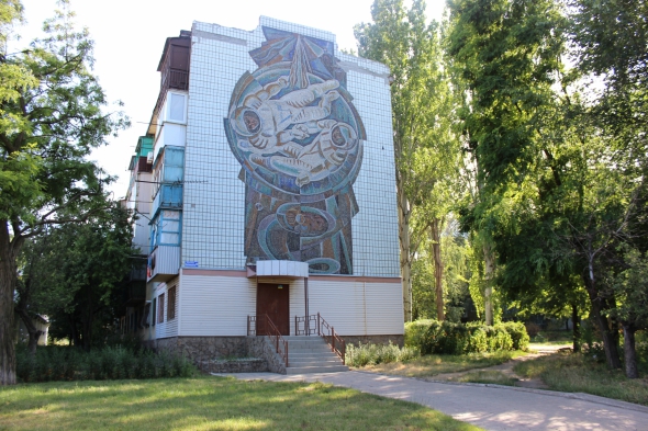 На хрущовських 5-поверхівках міста багато мозаїк. Одна присвячена космонавтиці.
