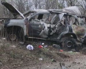 На кадрах відео - авто місії, яке знищено внаслідок вибуху та подальшого вигорання.