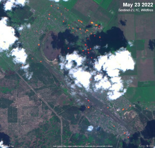 Супутниковий знімок бойових зіткнень військових РФ із ЗСУ опублікував Cesium.