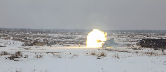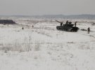 На вулиці -5ºС. Інструктори разом з екіпажами завершують останні приготування техніки. Сьогодні танкісти відпрацьовуватимуть стрільбу з ходу, використання природних укриттів і стрільбу з-за них.