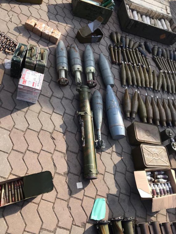 В одній із будівель виявлено арсенал зброї, а саме 12 протипіхотних та протитанкових мін, 11 великокаліберних та 30-мм снарядів, 28 мін калібру 82 мм, понад 14 тис. патронів, 328 боєприпасів до підствольного гранатомета, 28 гранат РГД-5, 10 гранат Ф-1, 33 гранатомети РПГ, 94 одиниці боєприпасів до РПГ, 2 автомати Калашнікова та 1 снайперську гвинтівку СВД.
